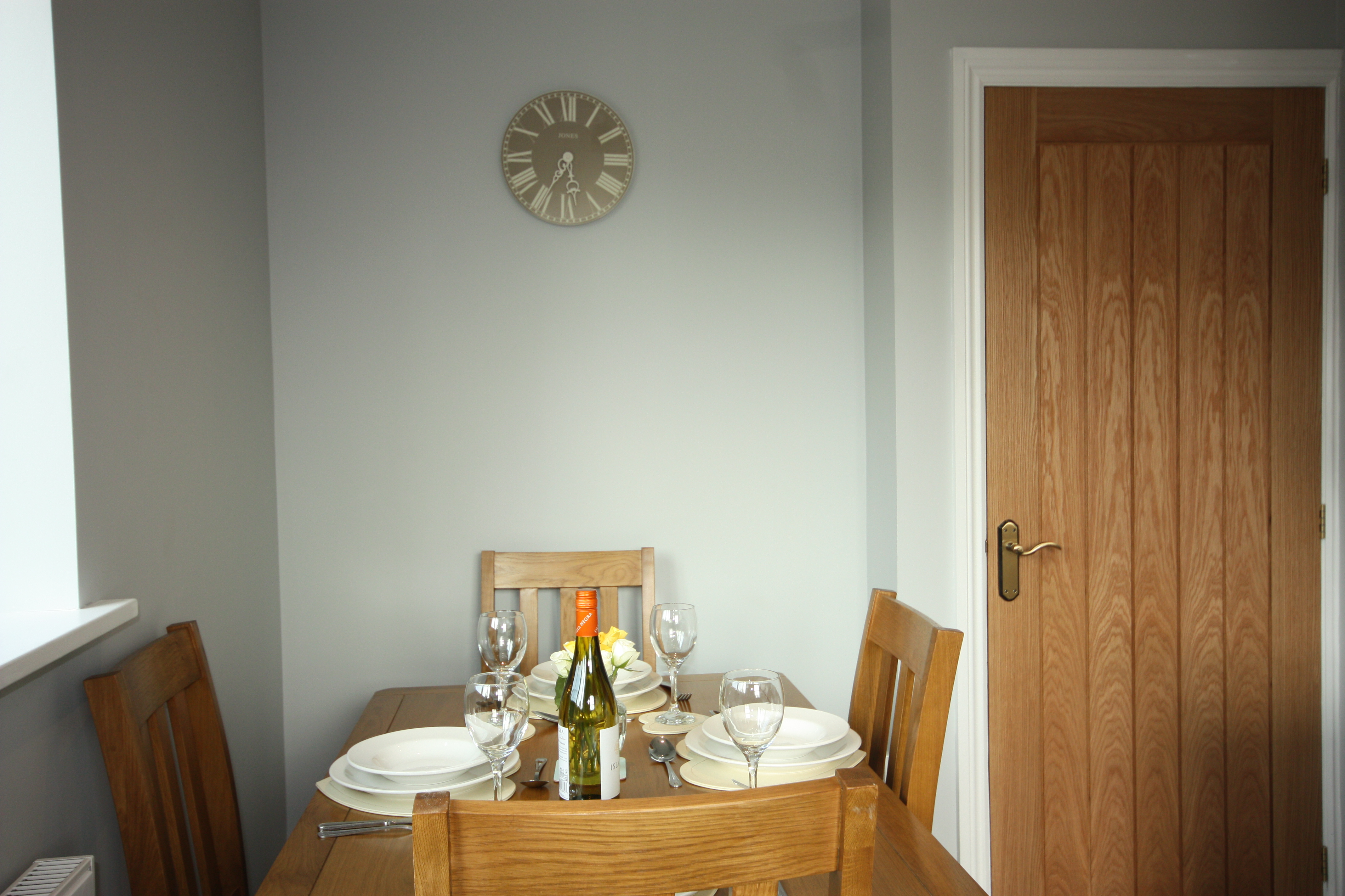 Our modern kitchen diner features an electric oven and ceramic hob, fridge/freezer, dish washer and microwave. With an oak table seating up to four, its the perfect place to enjoy a meal and a conversation.